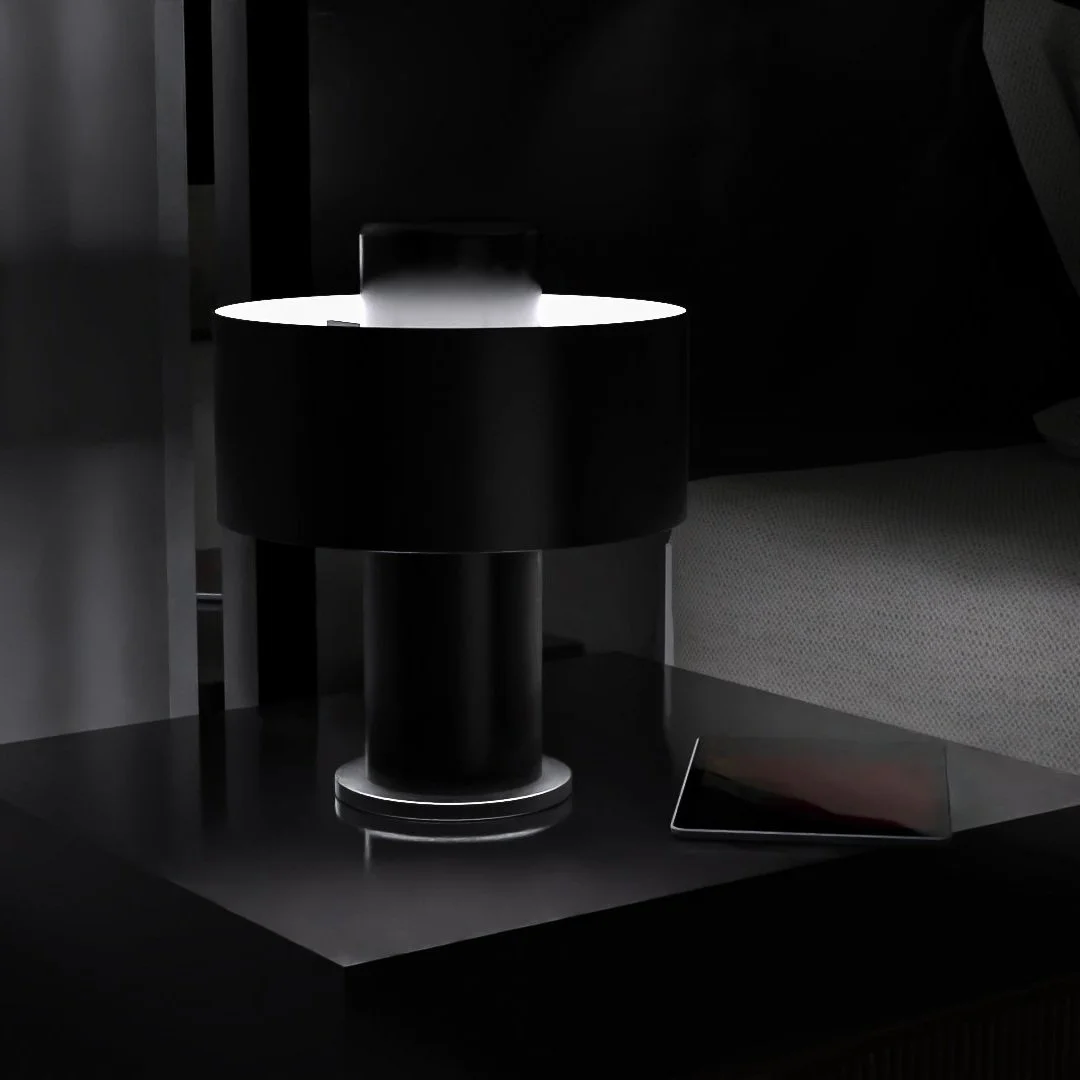 The Atom Lamp prioritizes user convenience and comfort during the bedtime routine, featuring touch functionality and multiple dimming options to customize the light settings and create the desired ambience. The core light at the lamp's center diffuses and reflects off the shade, emitting a subtle and tranquil glow that permeates the room. This soft radiance promotes a peaceful atmosphere, easing you into a restful slumber. With its thoughtful design and gentle illumination, the Atom Lamp not only enhances the bedside experience but also contributes to a serene and inviting environment, supporting a good night's sleep.