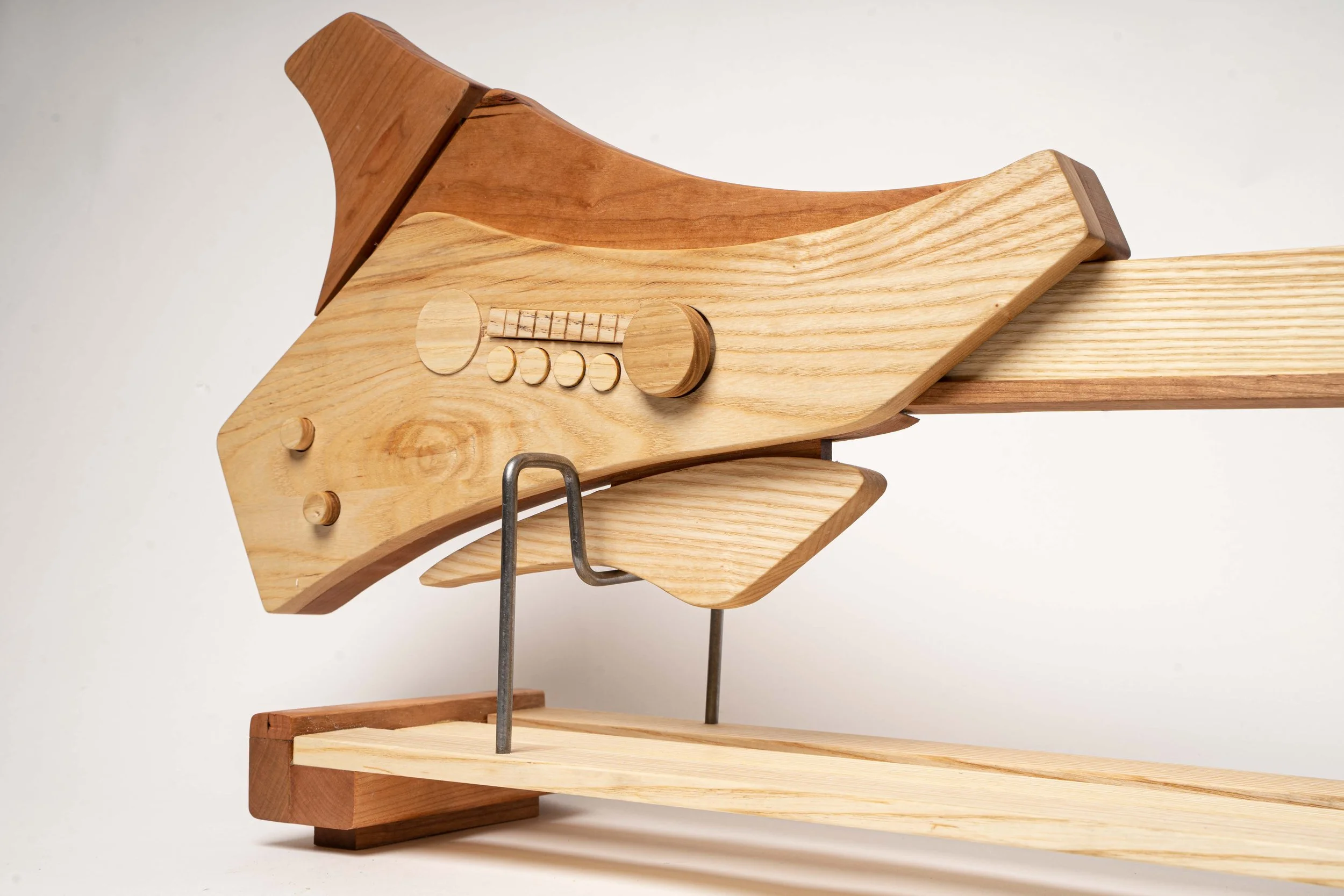 Building a mock 1:1 scale replica of the Ax-101 showed me how users would interact with the device. The curved gestures on each side of the guitar provided comfort and ease when performing. I included a versatile pitch modulator on the tail of the guitar that sets a higher pitch when moved to the right and lower pitch as moves to the left.